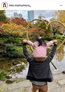 フジテレビの松村未央アナウンサー(36)が20日、自身インスタグラムを更新。夫でお笑い芸人の陣内智則(48)が4歳・長女を肩車する微笑ましい親子ショットを公開した。