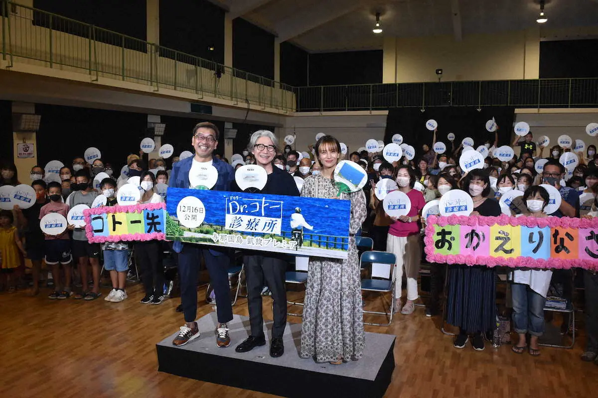 作中に登場する志木那島診療所のオープンセット前でトークショーを行った(左から)中江功監督、吉岡秀隆、柴咲コウ(撮影・糸賀 日向子) Photo by スポニチ 吉岡秀隆 感慨深げに「ただいま」 「Dr.コトー診療所」撮影の舞台与那国… ギャラリーで見る この記事のフォト 2022年11月22日の画像一覧 もっと見る 2022年11月22日の画像をもっと見る