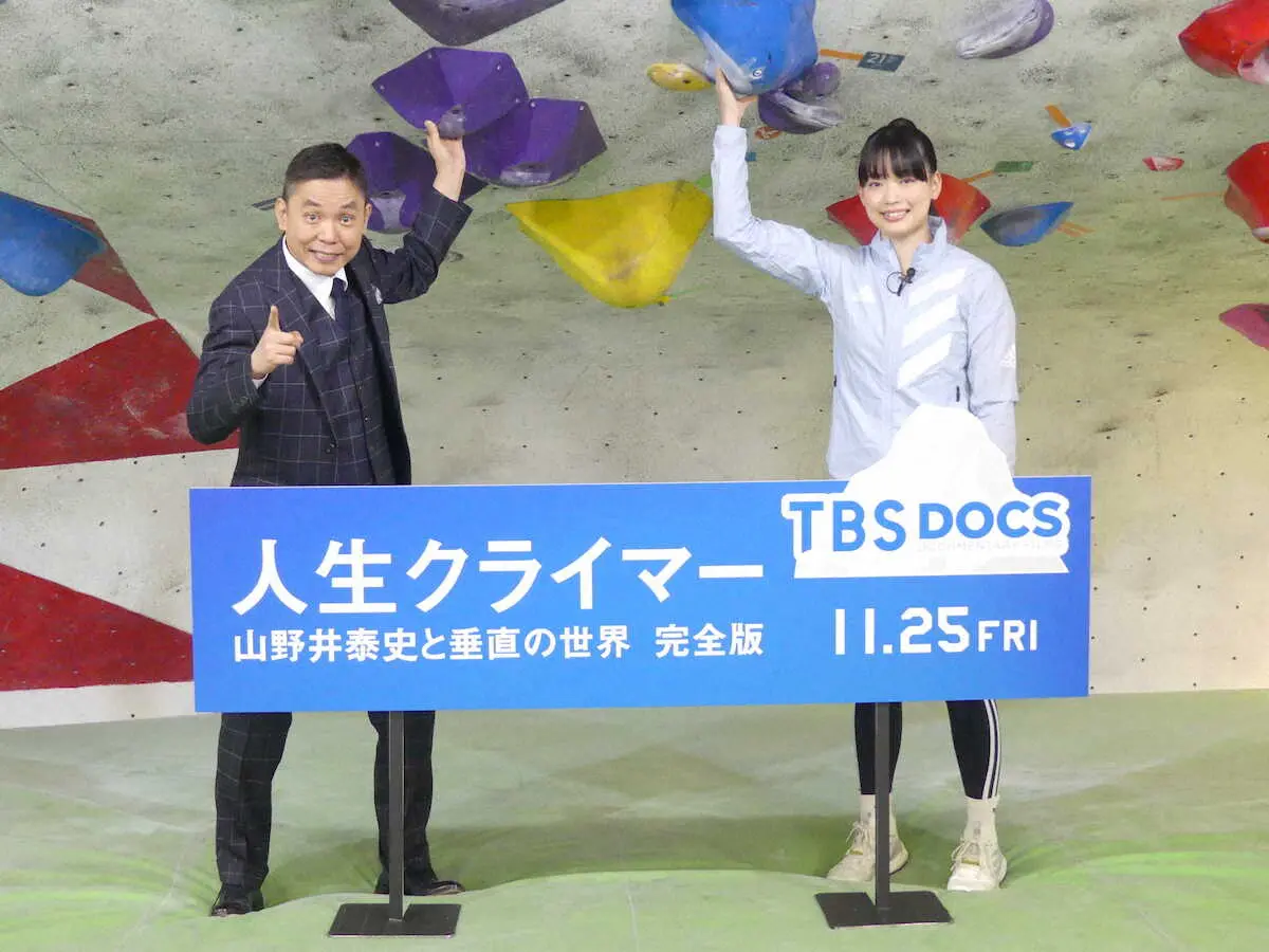 「“#太田光をテレビに出すな”ということもありました。なんとか挽回したい」と意気込み。25日公開の「人生クライマー 山野井泰史と垂直の世界 完全版」をはじめ、来年まで3作が公開される。太田は「どれをとってもハイレベルな作品」と太鼓判を押した。