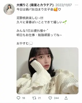 「この度、大槻りこ・浜辺さやがグループを脱退する運びとなりましたことをご報告いたします」と伝え、脱退理由は「幾度となく本人達と話し合いを行いましたが、活動に対する怠慢な姿勢及びアイドルとして相応しくない行為などがあり」と説明。12月4日の単独公演をもって2人は活動を終了する。それ以降の年内イベントは、残りのメンバー3人で出演。「来年1月以降はライブ活動をセーブし、新体制に向けた準備期間を設けさせていただく予定です」とした。