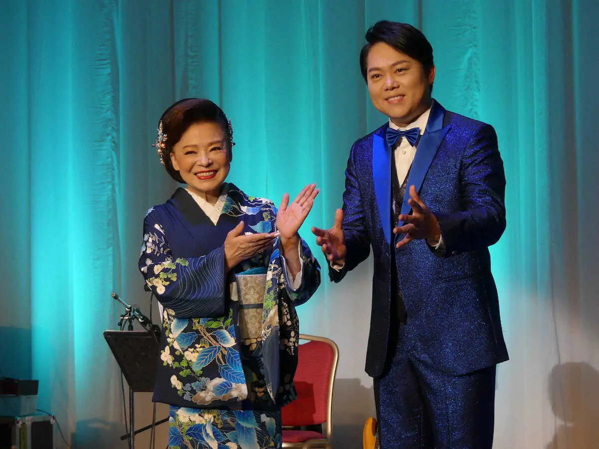 演歌歌手の松前ひろ子(72)と三山ひろし(42)が22日、都内でディナーショーを開催した。