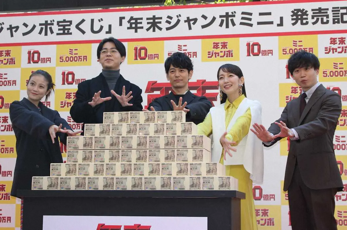 発売開始となったくじは1等・前後賞合わせて10億円、ミニは同5000万円という豪華賞金が魅力。当せんした場合の使い道について、妻夫木は「ジャンボきょうだいで映画を作る」と希望。CMに出演するメンバー「ジャンボきょうだい」との夢を語った。
