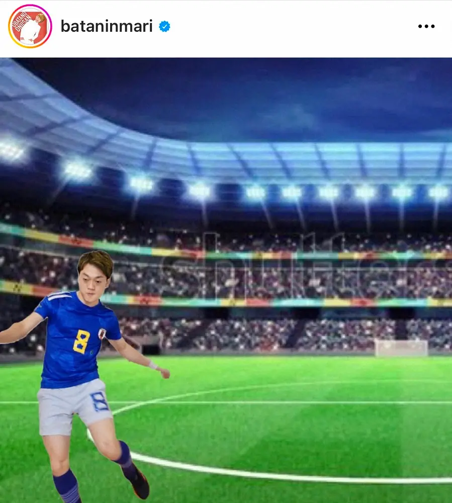 試合の興奮冷めやらぬ中、おばたのお兄さんは「サッカーW杯の日本戦、次から堂安律選手のことはこれで応援します」と、日本代表ユニホームに身を包み、スタジアム写真と合成させ堂安に扮(ふん)した自身の写真を投稿。堂安とは以前から「似てる」と言われてきたといい、「このサイズなら堂安律選手感があるはずです」と自信をのぞかせた。
