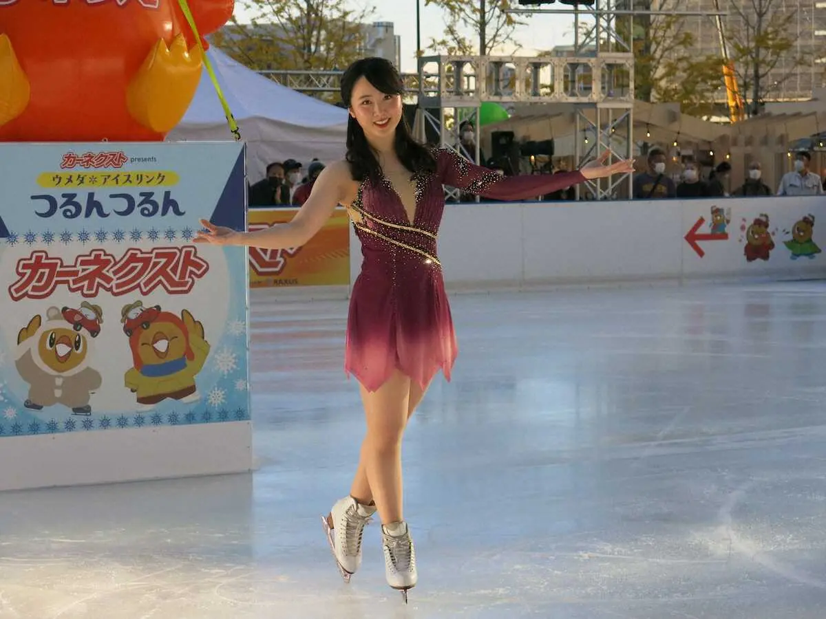 今年で9回目の開催。本田は小学4年から毎年登場しており「毎年の楽しみ」と気持ち良さそうにリンクを滑った。今年の衣装はワインレッド。「久々に関西に戻って、ウチで探して。3年前に使っていたモノ。身長が伸びたんで入るかなと思ったけど、頑張ったら意外に入りました」と笑わせた。中学3年の頃から「5、6センチは伸びてる」そうだ。