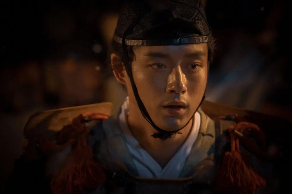 大河ドラマ「鎌倉殿の13人」第45話。雪が降り積もる鶴岡八幡宮の大階段。呆然自失の北条泰時(坂口健太郎)(C)NHK
