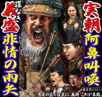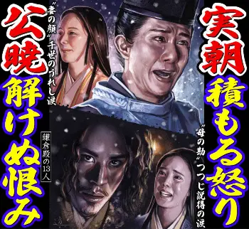 公暁が斬りかかり、実朝の血が雪を赤く染める。「阿闍梨公暁、親の敵を討ったぞ!」。しかし、読み上げる途中に声明文を実朝の亡骸の上に落としてしまい、血がついて読めない。義時は「斬り捨てよ!」。公暁は警固の兵から逃げた。