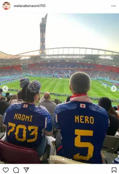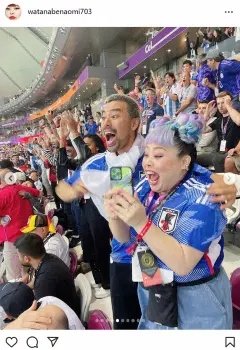渡辺は「日本vsドイツ カタールワールドカップに弾丸で試合観に行きました! ミュージカル終わって即飛行機乗ったにょw 初めてのサッカー生観戦が歴史的な試合でまじぶち上がりました」とつづり、観戦風景をアップ。日本代表の勝利を喜んだ。