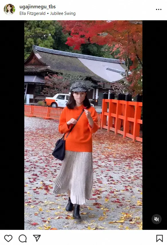 インスタグラムでは「休暇をいただき秋の京都に行ってきました。渡月橋や永観堂、上賀茂神社などを巡り 食べたかった京都グルメもいただいてきました。紅葉のライトアップも初めて見たのですがとても綺麗でしたよ。明日からまた頑張るぞ~」と満喫した様子。鮮やかな着物姿で竹林の中を散歩したり、落ち葉を拾う様子などを動画でアップした。
