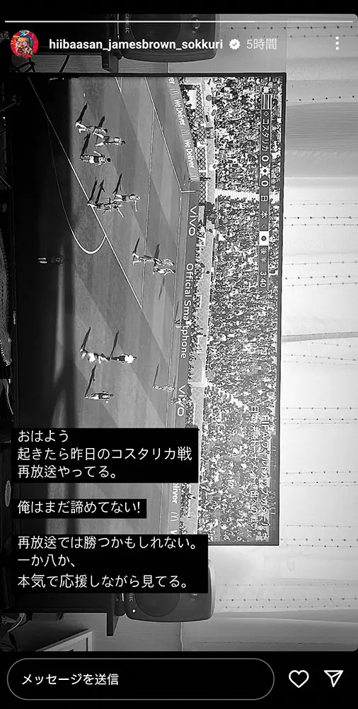 コスタリカ戦「再放送では勝つかもしれない」King Gnu勢喜遊の前向き投稿に反響「天才は発想違う」