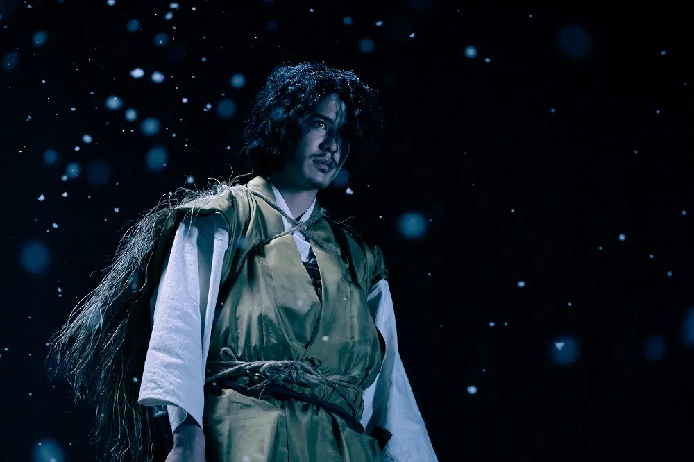 大河ドラマ「鎌倉殿の13人」第45話。雪が降り積もる鶴岡八幡宮の大階段。源実朝と見つめ合う公暁(寛一郎)は…(C)NHK