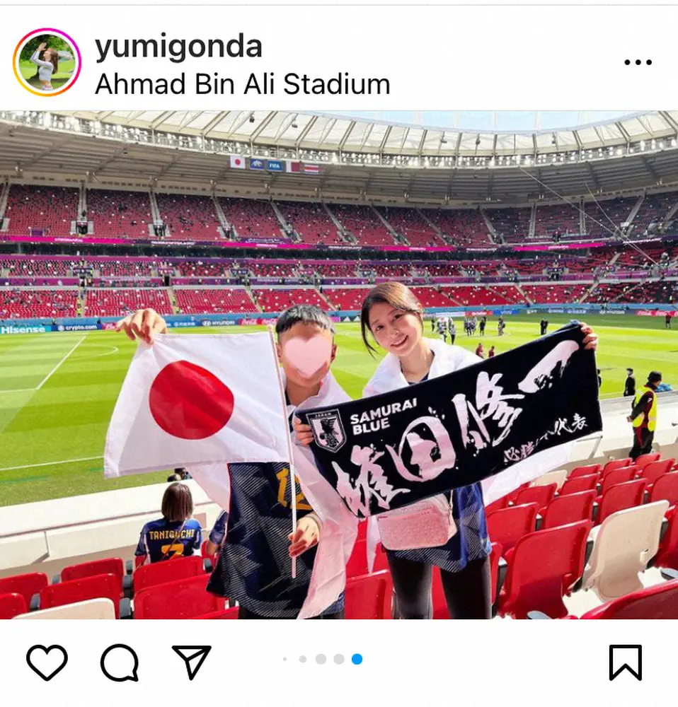 1次リーグE組第1戦で劇的な逆転勝利を挙げたドイツ戦に続き、コスタリカに敗れた第2戦も9歳の息子とともに現地で応援したことを報告した裕美さん。スタンドでの写真を複数枚投稿し、「試合に負けて帰ってきた時、私はいつも笑顔で出迎えるように心がけています」と悔しい敗戦をした夫への思いを吐露。「今までに色々なことがいっぱいあったけど、困難が立ちはだかっても何度も何度も立ち上がって乗り越えてきた主人の姿を見てきました なので私は、いつものように笑顔で!」主人の勇姿を見届けます。そして、声が出なくなることを覚悟で応援します!!」と妻として夫を見届ける覚悟をつづった。