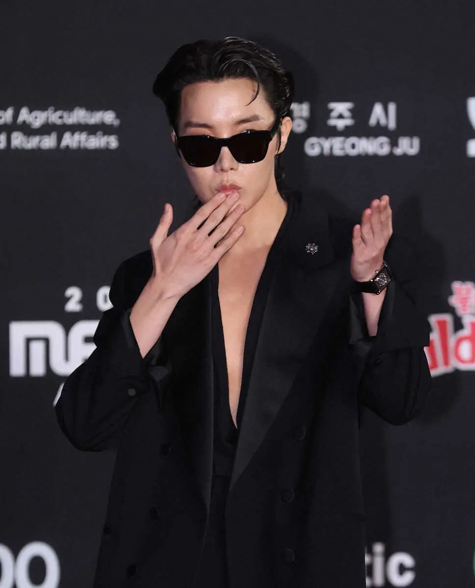 韓国の男性7人組グループ「BTS」のメンバー・J-HOPE(28)が30日、京セラドーム大阪で開催された音楽専門チャンネル・Mnetの授賞式「2022 MAMA AWARDS」のレッドカーペットに登場。胸元が大きく開いたブラックスーツでセクシーな姿を披露した