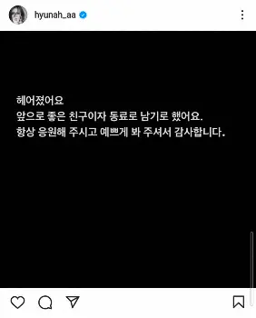 元「Wonder Girls」「4minute」のメンバーで歌手のキム・ヒョナ(30)が30日、自身のインスタグラムを更新し、オープンな交際をしていたラッパーのDAWN(28)と破局したことを報告した。