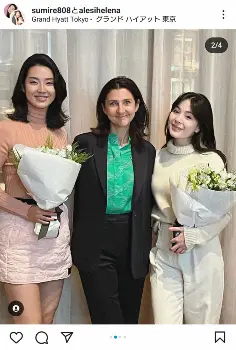 すみれはタートルネックのニットにミニスカート姿でグランド ハイアット東京のクリスマスツリーの前でエレナと並ぶ姿や、ロンシャンのクリエイティブ・ディレクター、ソフィー・デラフォンテーヌ氏と一緒の写真などを投稿。「素晴らしいランチ」に感謝し「すぐにパリで会いましょう」とつづった。