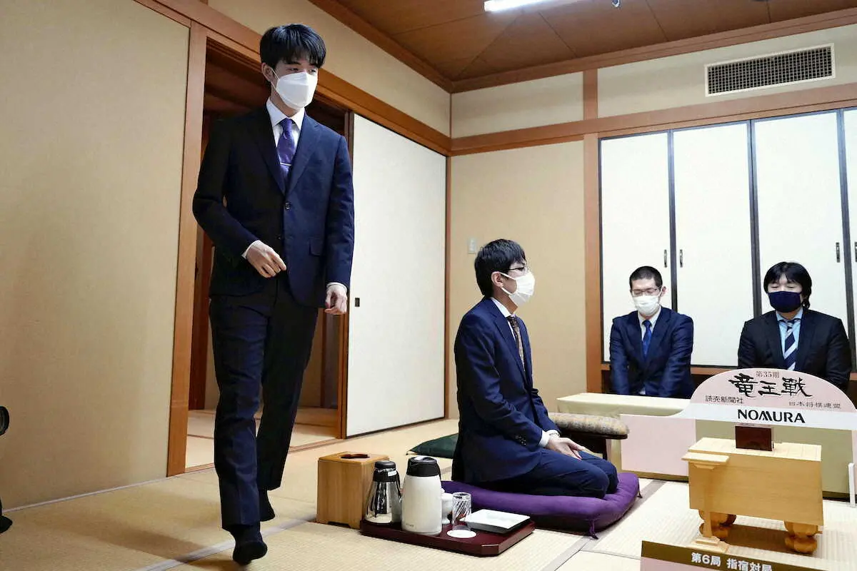 第35期竜王戦七番勝負第6局を前に検分に臨む藤井聡太竜王(左)と広瀬章人八段(1日午後4時59分、鹿児島県指宿市の「指宿白水館」で)=代表撮影 Photo by 代表撮影 藤井竜王「予習はできている」 第6局開会式に広瀬八段と出席 コロナ濃厚… ギャラリーで見る この記事のフォト 2022年12月01日の画像一覧 もっと見る 2022年12月01日の画像をもっと見る