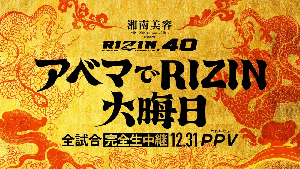 大みそかにさいたまスーパーアリーナで行われる「湘南美容クリニック presents RIZIN.40」(後2・00)の全試合をABEMA(アベマ)が完全生中継することが決定した。