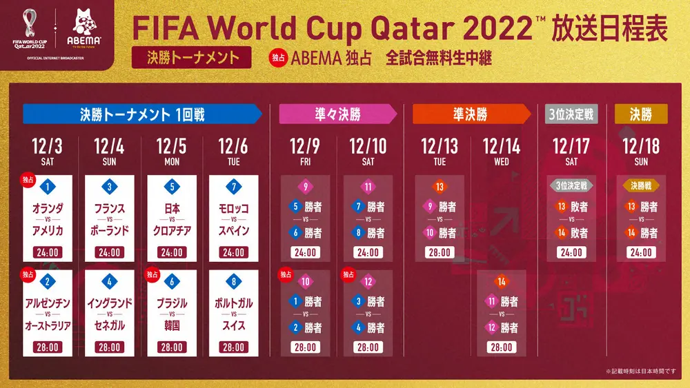 サッカーW杯カタール大会の全64試合を無料生中継する「ABEMA」(C)AbemaTV, Inc.