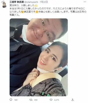 歌武蔵は1983年3月に大相撲の武蔵川部屋に入門。四股名は「森武蔵」。だが、ケガが理由で半年で廃業し、同年12月に三代目三遊亭圓歌に入門。翌年5月に前座となる。前座名「歌ちどき」。88年9月に二ツ目昇進で「歌武蔵」と改名。98年3月に真打に昇進した。今年7月22日、自身のツイッターで結婚したことを報告している。
