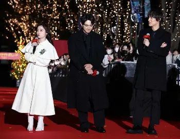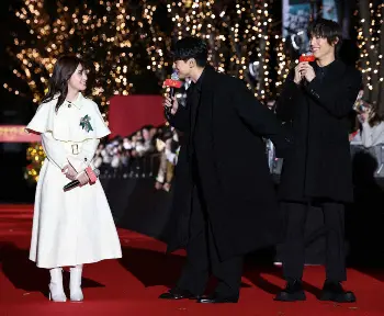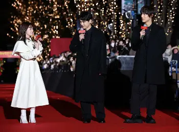 中川は「こんな華やかなイルミネーションの下でレッドカーペットを歩かせていただいてテンションが上がっております」とあいさつした。レッドカーペットの感触を聞かれると「すごいふかふかしていて足首に優しそう」と天然コメント。これには橋本も大笑いだった。