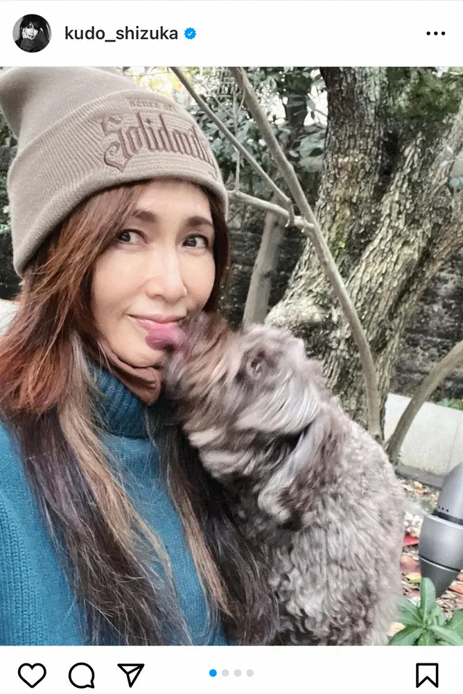 工藤静香 セーター&ニット帽の冬コーデ披露 愛犬と散歩する姿に「寒さも吹き飛ぶかわいさ」「美人さん」