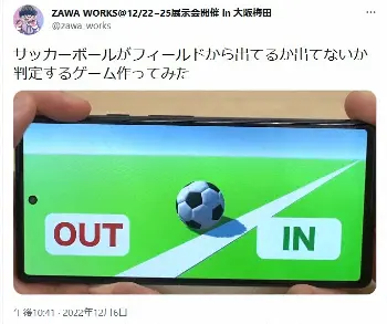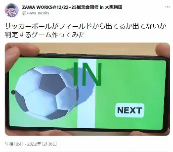 それは、クリエイターのZAWA WORKS(@zawa_works)さんが7日までに更新したツイッターで「サッカーボールがフィールドから出てるか出てないか判定するゲーム作ってみた」としてアップされたもの。ゴールライン上に転がったボールが「インか、アウトか」を判定するのだが、これが意外と難しい。最初はボールを横からのアングルで見るため、一見全て「アウト」のように見えるのだ。そして「イン」か「アウト」か、答え合わせとしてゴールラインの真上からのアングルに切り替わって初めて、判定が分かる仕組みになっている。