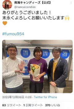 お笑いコンビ「南海キャンディーズ」の“しずちゃん”こと山崎静代(43)が7日深夜に、相方の山里亮太(45)がパーソナリティーを務めるTBSラジオ「JUNK山里亮太の不毛な議論」(水曜深夜1・00)にゲスト出演し、舞台俳優の佐藤達(47)と結婚することをサプライズで発表。番組内で、山里が婚姻届けの証人としてサインをした。