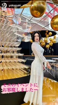 直前に更新したストーリーズでは、体のラインが美しい、白のロングドレスをまとった姿の写真を披露し、「モエのイベントにお邪魔しました」とコメントを添えている。