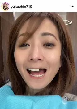タレントの岡田祐佳(50)が9日、自身のインスタグラムを更新。「前歯が欠けた」衝撃ショットを公開した。