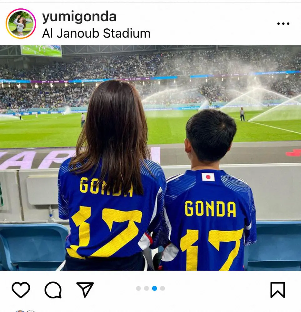 「9才の君の目に映るW杯はどうだった?」と投げかけた裕美さん。「普段、感情を表に出すタイプではない息子がグループリーグを突破した頃には『日本すげー』と目を輝かせて言っていたのが印象的でした」と振り返り、「世界の大舞台に出場した父親の一生懸命戦う姿を見れたこと。それまでの1日だって無駄にしない努力の日々を間近で見ていたこと。また世界の名だたる選手たちの試合を観戦出来て、1サッカー少年として一生忘れることのない経験になったと思います」とつづった。