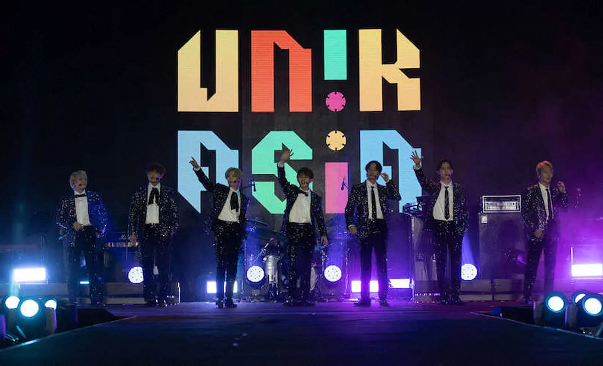 香港の大型イベント「UNIK ASIA FESTIVAL 2022」に出演するTravis Japanの(左から)松倉海斗、吉澤閑也、七五三掛龍也、宮近海斗、中村海人、川島如恵留、松田元太