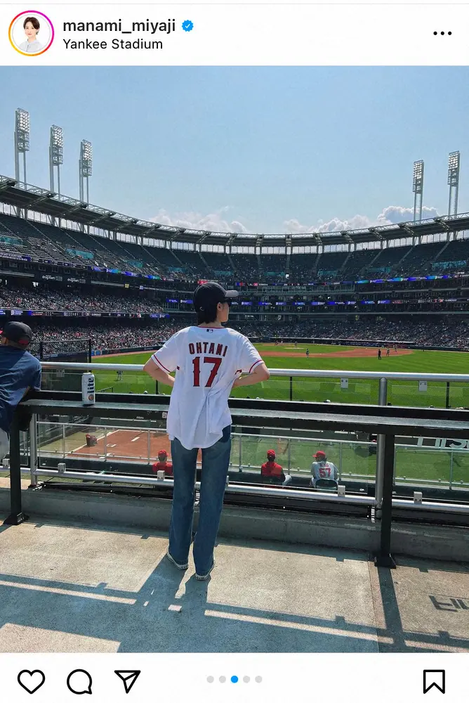 フォロワーからは「スタジアムが似合うよなぁ」「大谷選手ユニフォーム似合ってます」「ユニフォーム姿可愛すぎる」「大谷くんには会えたかな?」「メジャーリーグの臨場感を味わう愛海さん、心から楽しんでるのがヒシヒシと伝わります」「ラフさにも品があって、素敵」などとコメントが寄せられた。