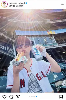 宮司アナは今年10月初旬に渡米しており、NBAネッツ・渡辺雄太の妻で、元フジテレビアナウンサー・タレントの久慈暁子のインスタグラムではニューヨークで対面したことが明かされていた。今回の投稿では「やっと現像した…気づいたらもう2カ月半も経っていてびっくりです」と旅行中の写真を公開。大谷のユニホーム姿でホットドッグを頬張る姿や、ピンストライプのユニホームを着てヤンキースタジアムを訪れている様子をアップした。