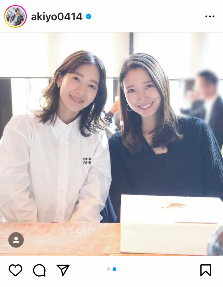 この投稿に、フォロワーからは「他局の女子アナのツーショットは嬉しくなります」「ママショット最高」「お二人とも素敵です」「 2人とも美人すぎ」「綺麗が過ぎる人が2人も揃うと後光が差す」「むちゃ素敵です」「あっきーよと三田ちゃんのツーショットとか新鮮」「美人同期」などのコメントが寄せられている。
