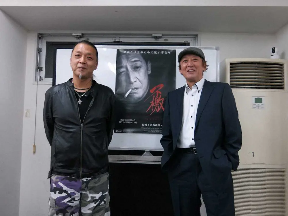 タレント・長原成樹(58)、彫り師で俳優の河本政則(49)がW監督、W主演を務める映画「不檄(ふれぶみ)~男たちの生きた証~」(18日公開、100分)の完成発表会見が12日、大阪市内でった。