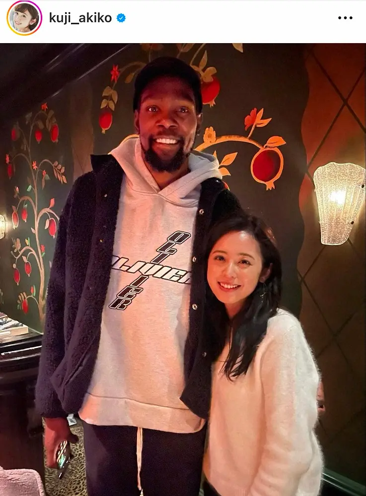 元フジテレビアナウンサーでタレントの久慈暁子(28)が19日、自身のインスタグラムを更新。NBAネッツの夫・渡辺雄太(28)のチームメートであるケビン・デュラント(34)との2ショットを投稿した。