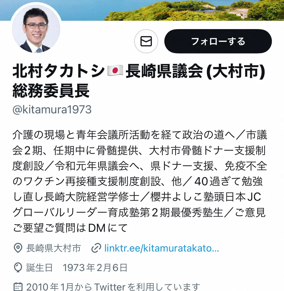 長崎県の北村貴寿県議(49)が15日までに自身のツイッターを更新。酔っ払って列車内で懸垂したことを謝罪した。
