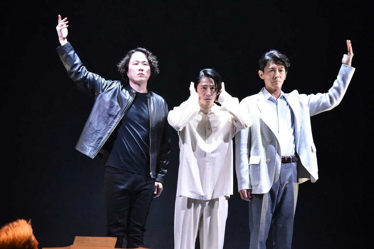 舞台「Trio~君の音が聴こえる」の初日を迎えた(左から)大鶴佐助、三宅健、藤木直人(撮影・糸賀日向子)