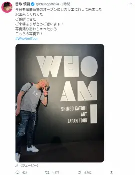 JPは15日、香取の個展に訪れたことを自身のツイッターで「おっはーカッコヨカッタ」と投稿。香取をまねた表情で、記念写真をアップしていた。