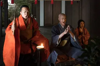 実衣(宮澤エマ)は勝利を願い、阿野全成(新納慎也)仕込みの激しい読経。鐘を鳴らしながら「ゲンダーウン!ゲンダーウン!」と唱えた。第13話「幼なじみの絆」(4月3日)、実衣も途中参戦した全成と文覚(市川猿之助)による“読経合戦”のリフレインだ。正面から全成を捉え、寄ったり引いたりのカメラワークも出色だったが、SNS上には「亡き夫のスキルを継いだw」「カメラワークまで全成殿の時と同じだったしw」「全部の伏線回収で泣けるよね。ゲンダーウン!で泣けたもんw」などの声が続出。視聴者の泣き笑いを誘った。