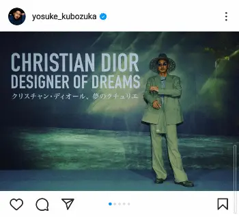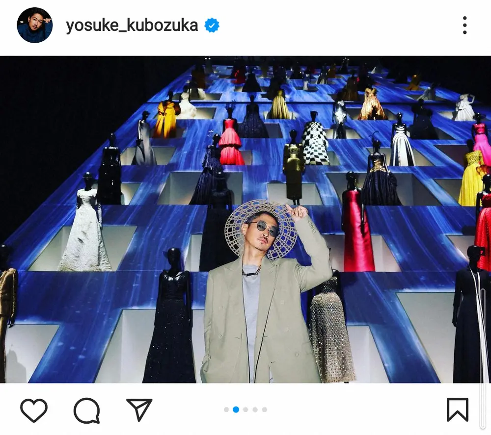 また「75年を越えるその歴史と感性、貫禄と美しさに感動すらしました。初期の頃から日本文化に影響を受けていたというのも納得の展示もあり、全13室色とりどりでまったく隙ナシ。ほんとに素晴らしい。こんな素敵な展示を東京都と5月末までって、やっぱりDiorすごいですな。衣装はキムの2023年新作」と感想をつづると、「※最後の一枚はバッタリ初対面でご挨拶(あいさつ)してくれた、横浜流星くんと」と黒のシャツ、ネクタイ、スーツ姿の横浜との2ショットを投稿した。
