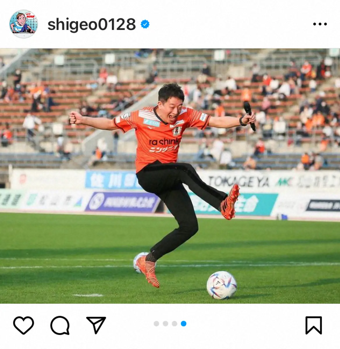 ハッシュタグでも「#権田修一選手」「#神セーブ」「#似てるといわれて光栄すぎる」「#愛媛fc」「#へっぽこシュート」と添えた。