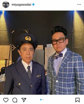 宮川は「NSC入れたら33年。今でも一緒に仕事が出来てホンマに嬉しい」と、1月2日に放送されるABCテレビ「岡村隆史の花の駐在さん」での共演風景となる2ショットを掲載した。
