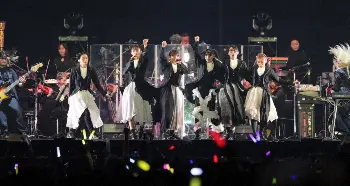 この日のライブはフルオーケストラ体制。教会のステンドグラスのような舞台演出を背に、燕尾服のようなシックな衣装を身にまとい代表曲「プロミスザスター」「オーケストラ」や新曲「サヨナラサラバ」など全15曲を披露。それでも変わらずヘッドバンキングやシャウトなどBiSHらしいステージを見せつけた。