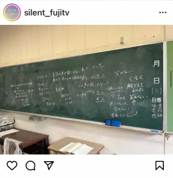 公式インスタグラムでは「#silentメイキング 8年ぶりの教室」とつづり、教室の黒板の写真をアップ。「黒板の文字は、なんども練習して書かれたものです #silent #川口春奈 #目黒蓮」と裏側を添えた。