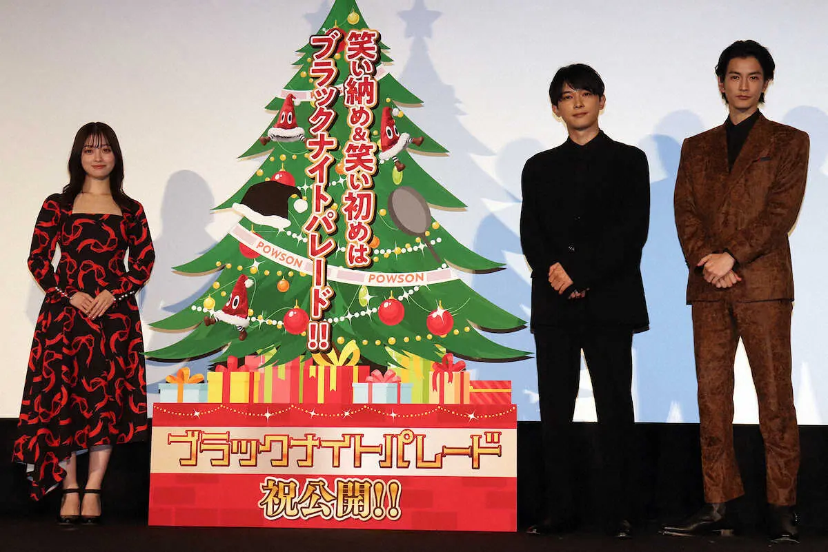 サンタクロースの派遣会社に就職したフリーターが過酷な労働を強いられるコメディー。吉沢は「体力勝負の撮影で、サンタは本当にブラックだと思った」と苦笑い。劇中で変顔を披露する橋本について「寄りの顔を撮る前に、端っこで練習していた。めっちゃストイックじゃんと思った」と明かし笑わせた。