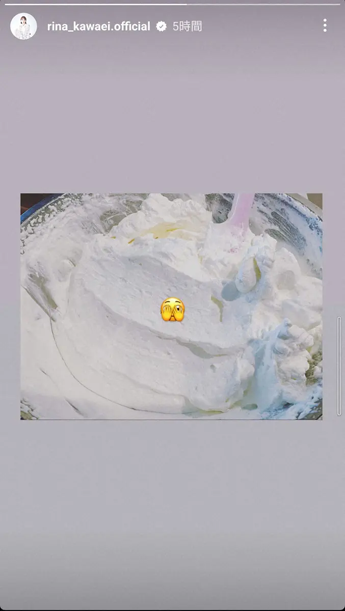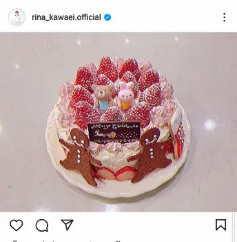 川栄はたっぷりのイチゴに熊とうさぎの砂糖菓の飾りなどがあしらわれたかわいいケーキの写真を投稿し「メリークリスマスイブ 今年はケーキを作りました」と報告。「スーパーはしごしたけどサンタの砂糖菓子見つからず 売ってたクッキーとサンタの代わりにうさぎとくまさーん ※生クリームの絞り方下手すぎてウェーブ強めになってます」とし、ストーリーズで生クリームの写真も投稿。「みなさま素敵なクリスマスを」とした。