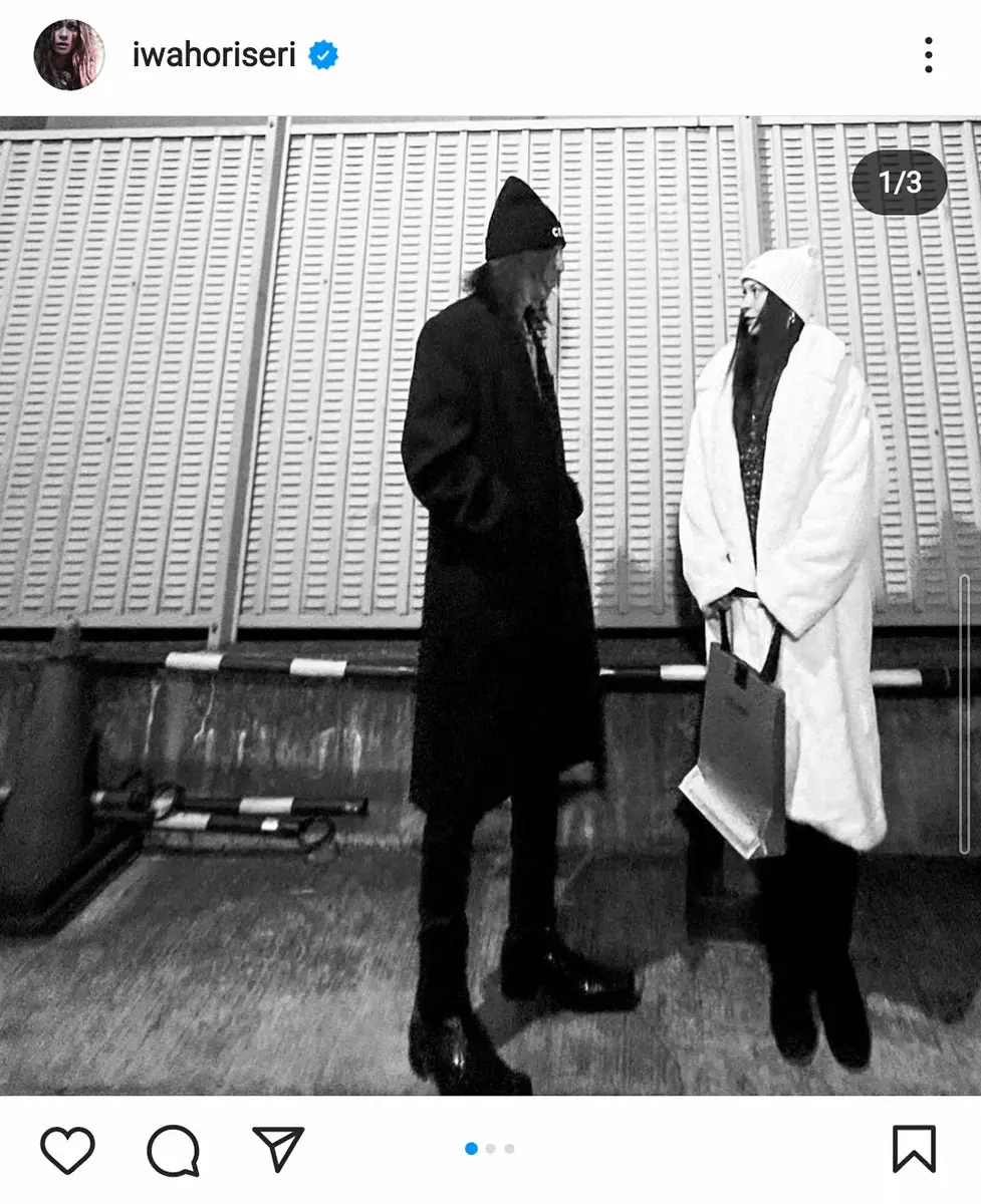 岩堀は「夫婦でクリスマスプレゼントを交換したらまさかのお互い #celine のニット帽だった奇跡」とつづり、2人でプレゼントのニット帽を被って笑顔の写真や、腕を組んで歩く写真などを投稿した。