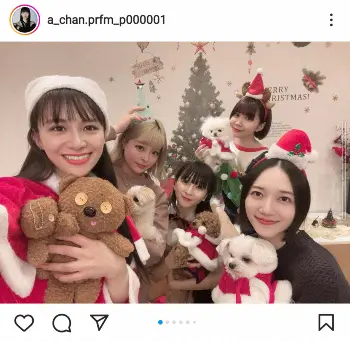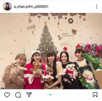 テクノポップユニット「Perfume」の「あ~ちゃん」こと西脇綾香(33)が25日、自身のインスタグラムを更新。Perfumeの「かしゆか」こと樫野有香(34)、「のっち」こと大本彩乃(34)、歌手のきゃりーぱみゅぱみゅ(29)、妹で歌手の「ちゃあぽん」こと西脇彩華(30)とクリスマスを祝う様子を披露した。