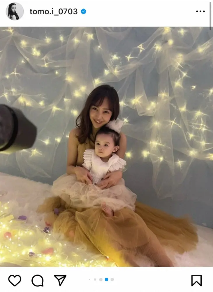 元AKB48で女優、歌手・板野友美(31)が25日までに自身のインスタグラムを更新し、1歳長女の顔出しショットを披露した。