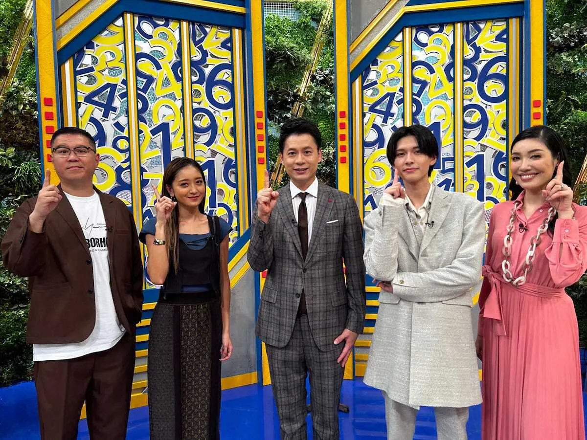 フジテレビの情報バラエティー「知って得する!1番かぶり」に出演する(左から)長谷川忍(シソンヌ)、みちょぱ、石井亮次、酒寄楓太、アンミカ(C)フジテレビ